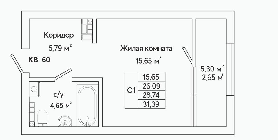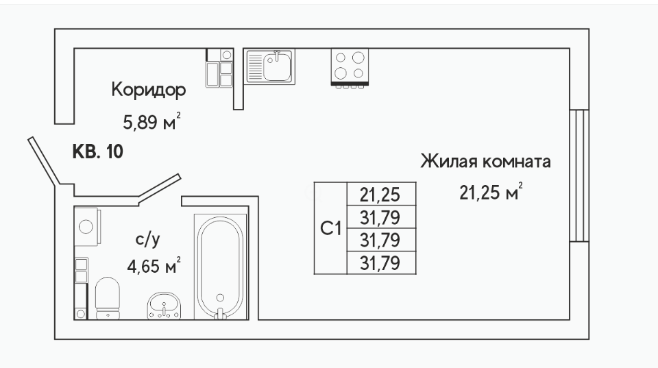 Студия, 31.2 м², 8/25 этаж
