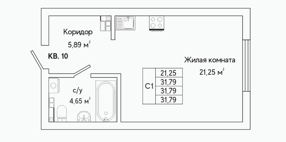 Студия, 28.8 м², 10/25 этаж
