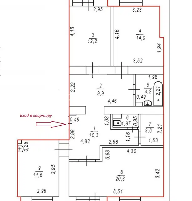 3-комн. кв., 63.5 м², 1/9 этаж