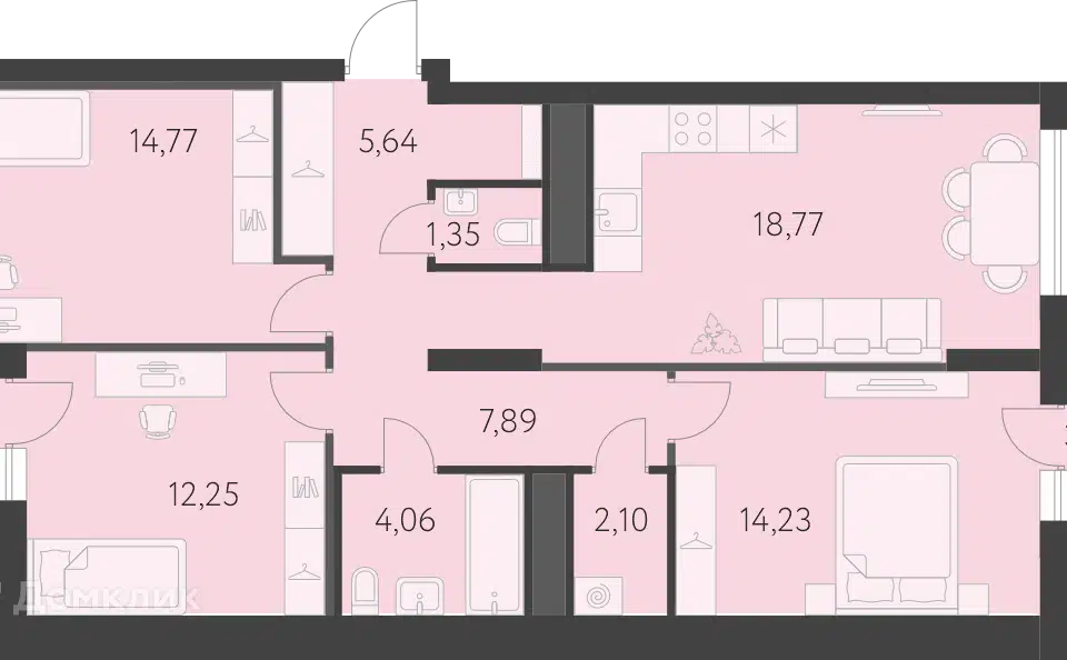 3-комн. кв., 77.2 м², 8/15 этаж