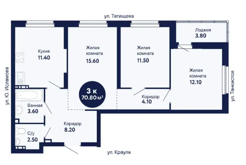 3-комн. кв., 71.52 м², 2/22 этаж