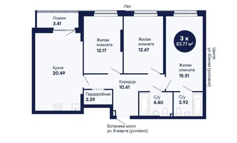 3-комн. кв., 83.77 м², 2/27 этаж