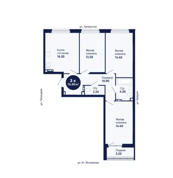 3-комн. кв., 77.1 м², 14/20 этаж