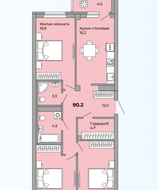 3-комн. кв., 90 м², 32/33 этаж