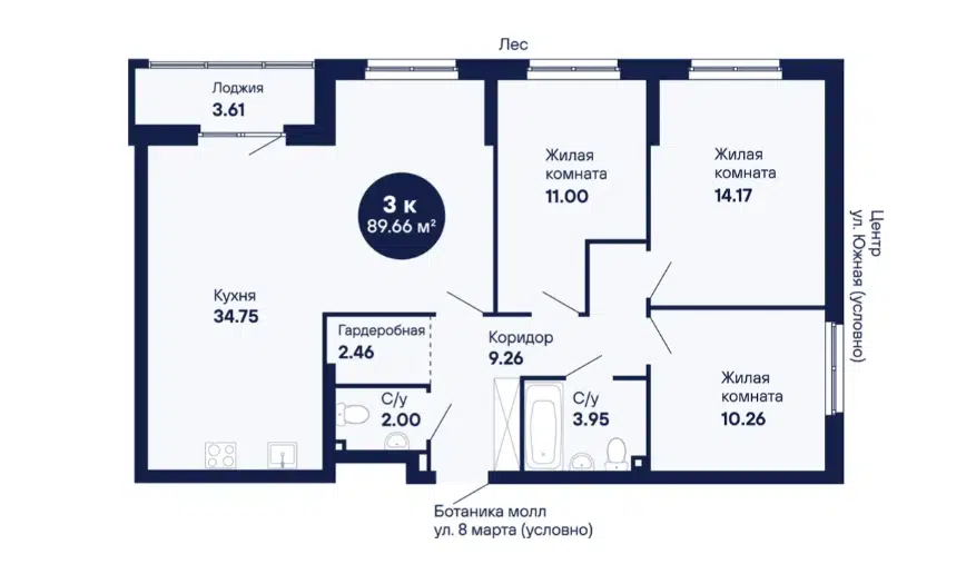 3-комн. кв., 89.2 м², 10/12 этаж
