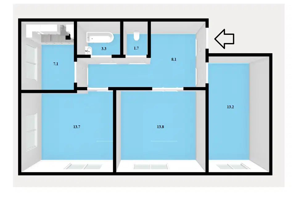 3-комн. кв., 67 м², 9/9 этаж
