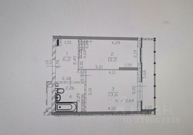 3-комн. кв., 57 м², 2/9 этаж