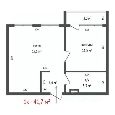 1-комн. кв., 41.7 м², 4/9 этаж