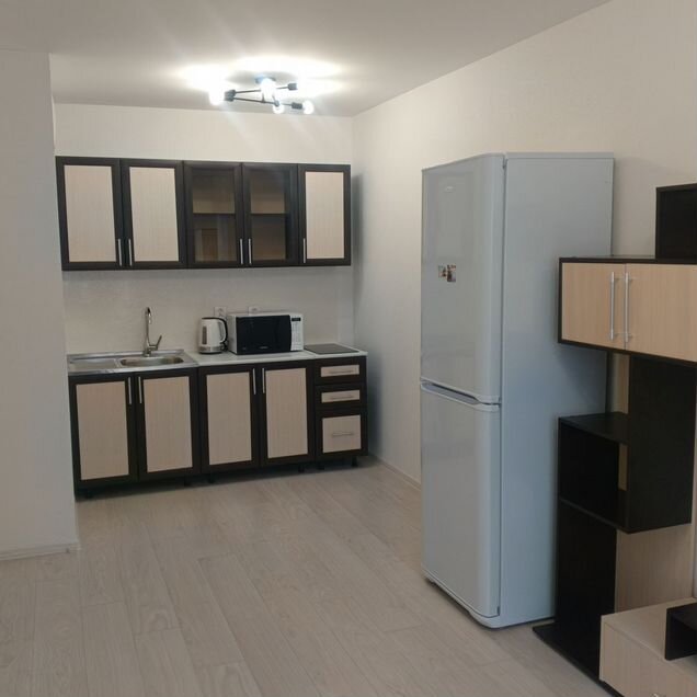 Уютная, чистая квартира в новом доме, включает в себя необходимый набор предметов первой необходимости. Холодильник, стиральная машина, электрическая плита, микроволновка. Диван, шкаф для хранения личных вещей, обеденная зона.