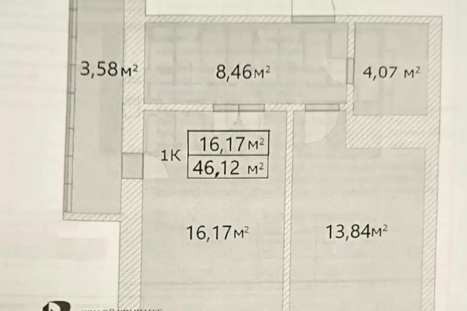 Общая площадь квартиры по выписке ЕГРН без учета балкона 42,7 кв.м., проектная 46,12 кв.м., высота потолков 2,7 м. В квартире выполнена качественная предчистовая отделка: полусухая стяжка пола, гипсовая штукатурка, межкомнатные стены из кирпича, оборудована счетчиками тепла с терморегулировкой, что поможет вам контролировать потребление энергоресурсов.