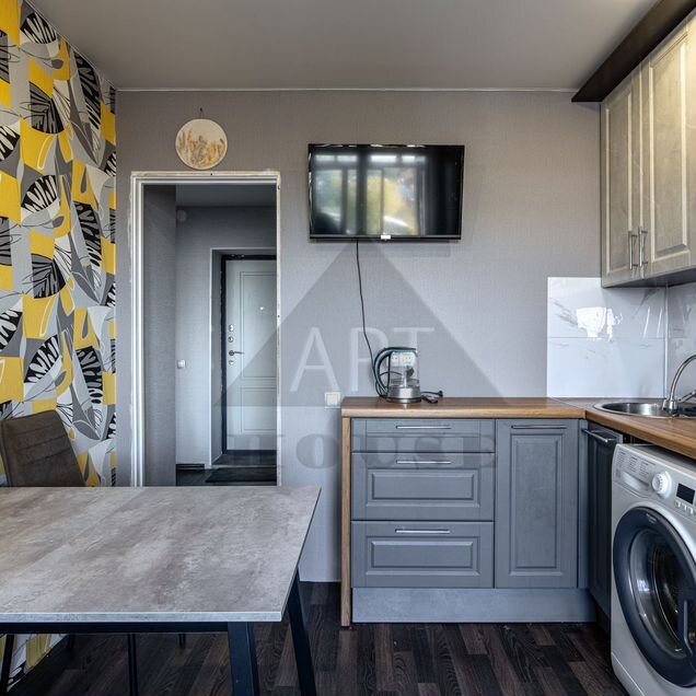 Студия полностью готова к проживанию — можно заезжать и жить! Вся мебель и техника остаются новому владельцу: диван, обеденный стол, стулья, кухонный гарнитур, холодильник, стиральная машина, бойлер на 30л — всегда горячая вода.