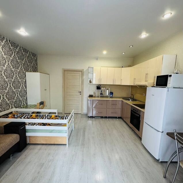 Уютная студия с новым ремонтом в жилом доме (не общежитие), родной стояк, чистый подъезд, благополучные соседи, низкие коммунальные платежи 2000р. Отличный вариант как для проживания, так и для вложения средств. До станции метро 15 минут (откроется в 2027 году).