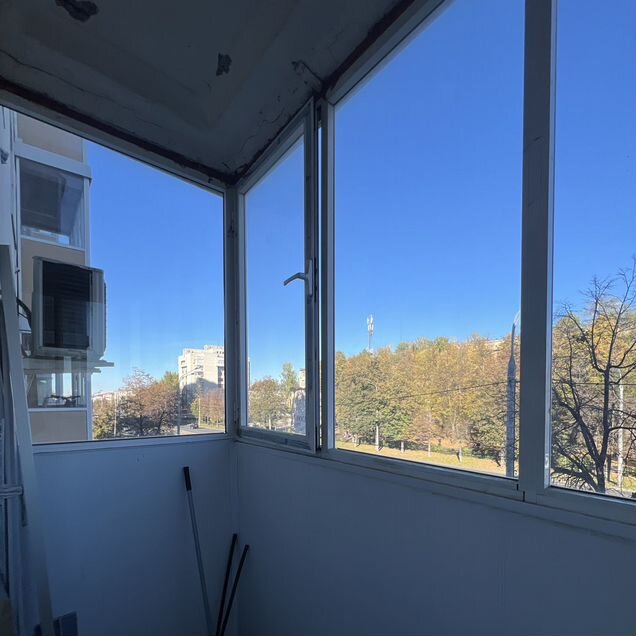 Лоджия застеклена и утеплена, с видом на двор.