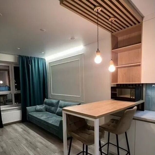 - полноценная изолированная спальня и гостиная комната, разделение на личную жизнь и развлечения, посиделки с друзьями.