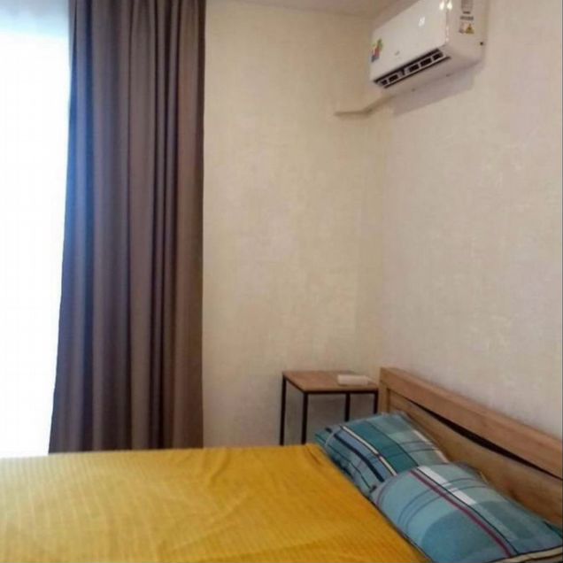 В квартире сделан косметический ремонт, есть вся необходимая мебель как на кухне, так и в комнате. Встроенная техника включает в себя кондиционер, холодильник, телевизор и стиральную машину, поэтому можно сразу заселяться и жить с комфортом. Совмещенный санузел оборудован душевой кабиной. Также есть балкон, где можно отдохнуть на свежем воздухе.