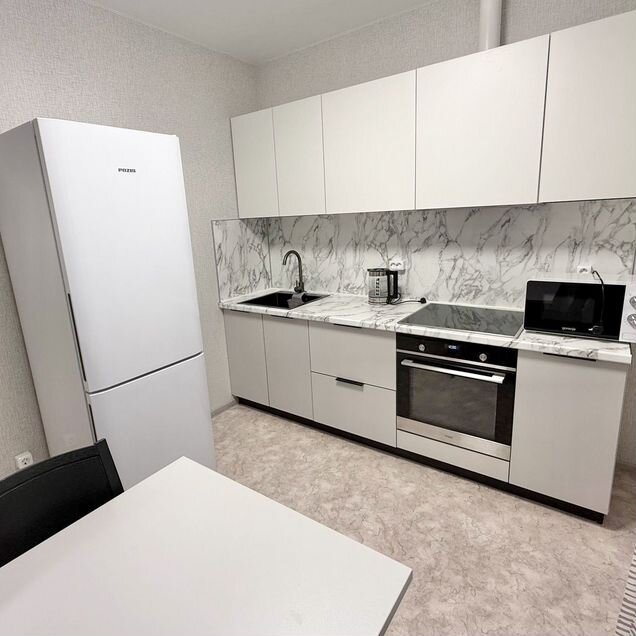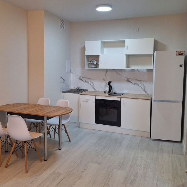 В квартире есть всё необходимое, укомплектована мебелью и техникой: холодильник, стиральная машина, микроволновая печь, электрический чайник, газовая плита, духовой шкаф, кондиционер, стиральная машина, раскладной диван на кухне, кровать двухспальная, вместительный шкаф-купе, есть отдельная гардеробная комната. В квартире минимализм, эргономичное расположение мебели и техники, есть всё для комфортного проживания.