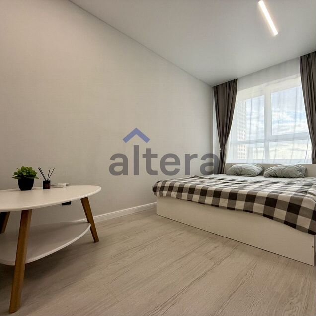 В квартире сделан косметический ремонт, есть вся необходимая мебель как на кухне, так и в комнате. Встроенная техника включает в себя кондиционер, холодильник, телевизор и стиральную машину, поэтому можно сразу заселяться и жить с комфортом. Совмещенный санузел оборудован душевой кабиной. Также есть балкон, где можно отдохнуть на свежем воздухе.