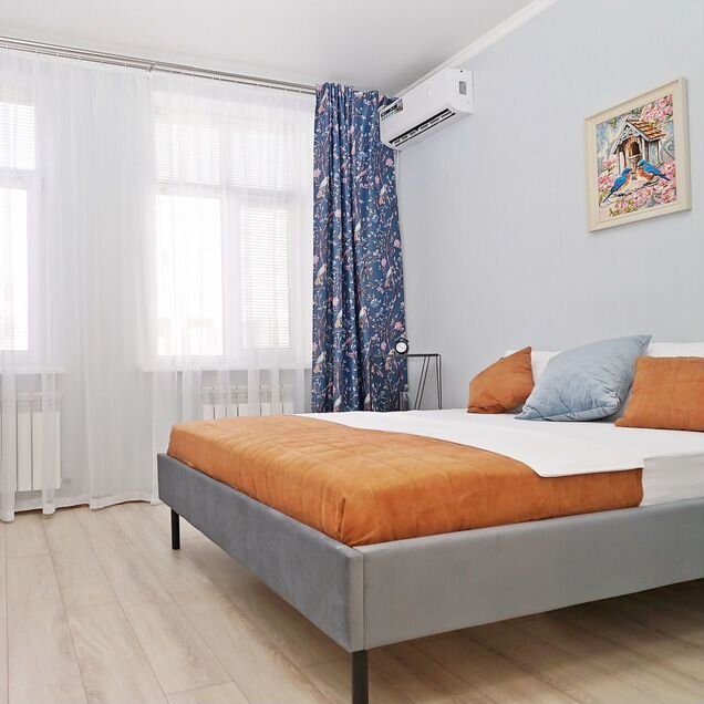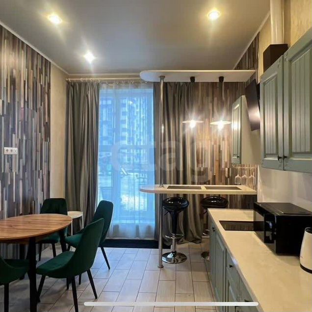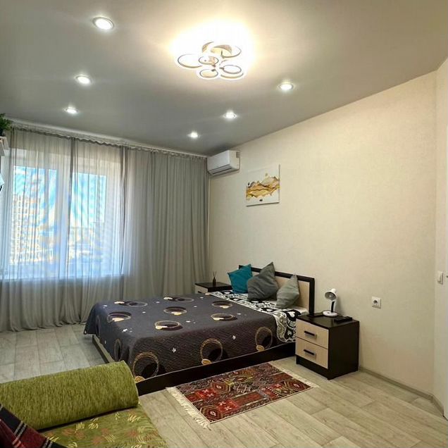 В квартире сделан свежий дизайнерский ремонт, поэтому она выглядит стильно и современно. Просторная кухня площадью 11 кв. м оборудована всей необходимой мебелью и техникой: кондиционер, холодильник, телевизор и стиральная машина. В комнате также есть мебель, а окна выходят во двор, поэтому в квартире тихо и уютно. Ванная комната оснащена удобной душевой кабиной. Балкон выходит во двор, где приятно провести время на свежем воздухе.