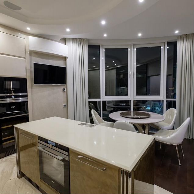 Квартира расположена на 4 этаже. Из окон открываются потрясающие виды на историческую часть города и реку Кубань. Вся квартира в шикарном дизайнерском ремонте! Вся мебель, техника и материалы только от ведущих европейских производителей. Высота потолков 3 м.