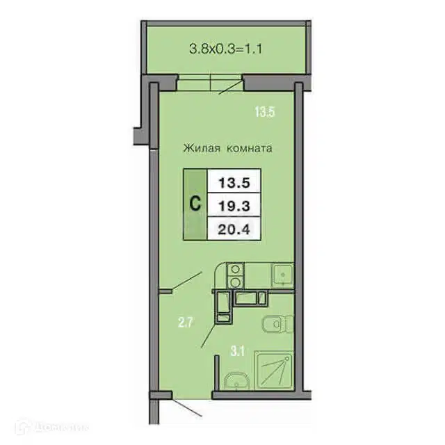 Студия, 20.4 м², 8/19 этаж