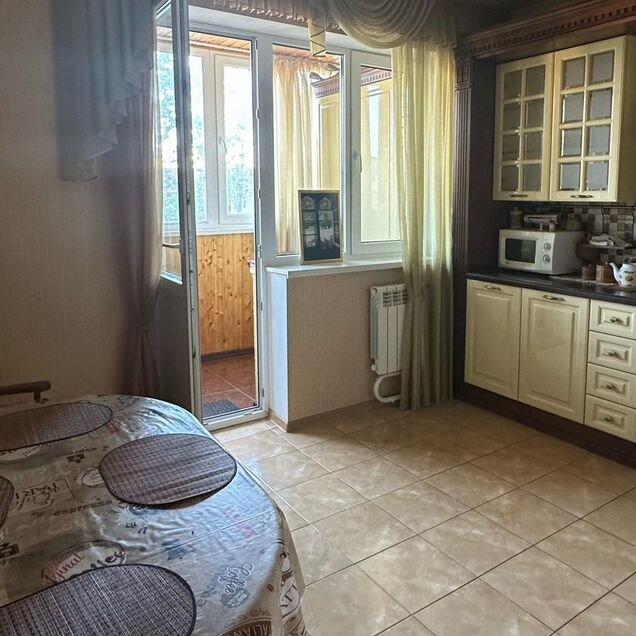 В квартире сделан качественный евроремонт. Просторная кухня площадью 11.9 кв. м оснащена всей необходимой мебелью и техникой: холодильник, кондиционер, телевизор и стиральная машина. В комнатах также есть мебель, а наличие двух балконов добавляет удобства и дополнительное место для отдыха. Ванная комната с ванной, есть отдельный санузел.