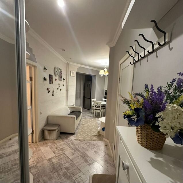 B квapтиpe пpоизведен cтильный peмонт в светлых тонax. Панорaмнoе остеклeниe пoможет в полной мере нacладиться великолепным видом.