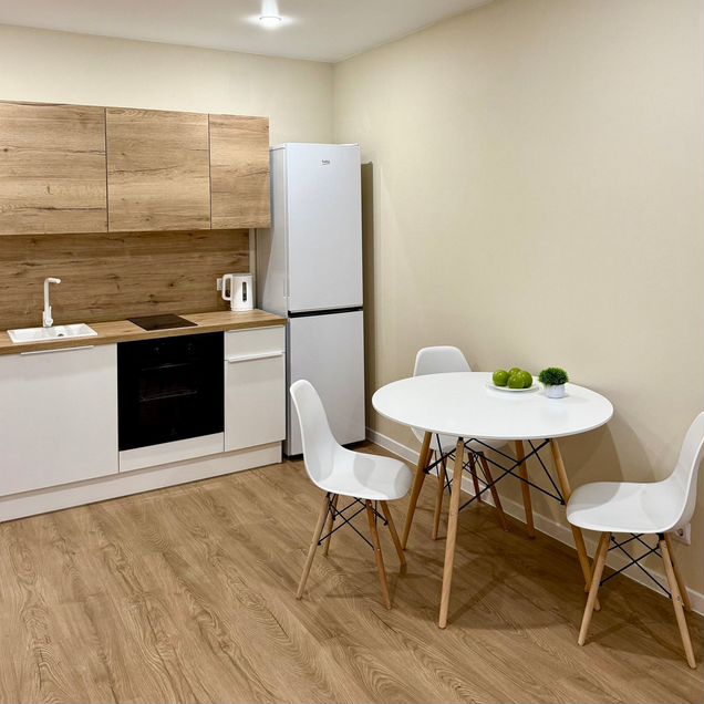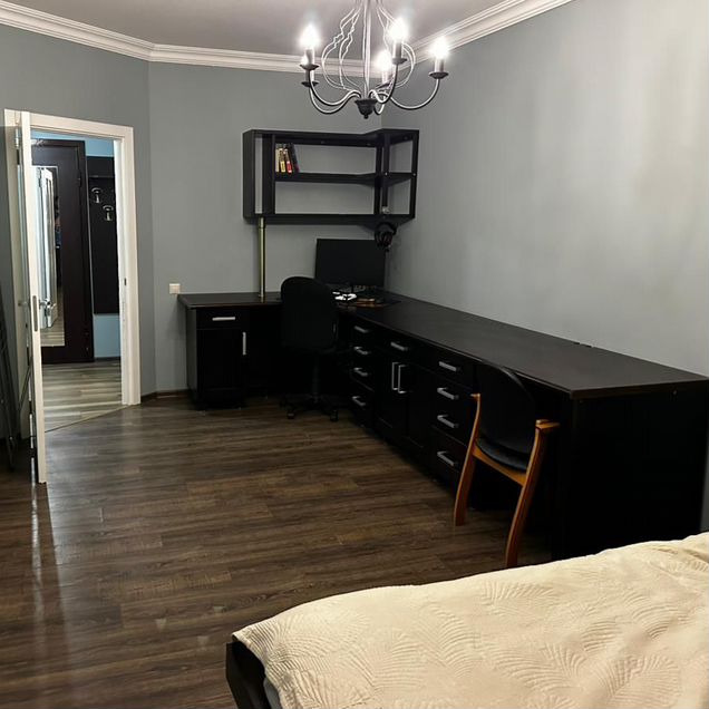 Квартира с евроремонтом, полностью готова к проживанию. В просторной кухне площадью 24 кв. м есть вся необходимая мебель и техника: холодильник, кондиционер, телевизор и стиральная машина. В комнате также имеется мебель, что позволит вам сразу переехать без дополнительных хлопот. Совмещенный санузел оборудован ванной, что особенно приятно после долгого дня.