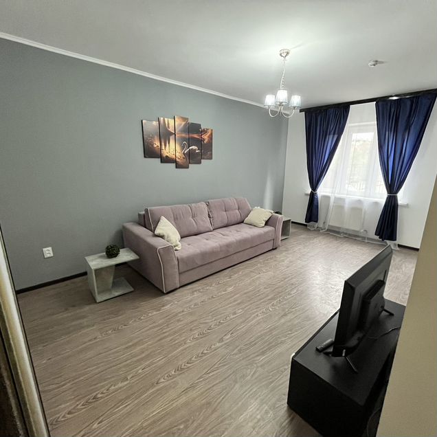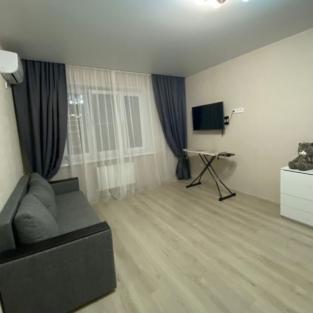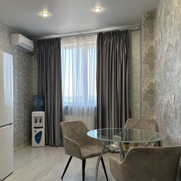 Квартира с евроремонтом полностью готова для комфортного проживания. В наличии вся необходимая мебель как на кухне, так и в комнате. Совмещённый санузел оборудован ванной. Из техники есть кондиционер, холодильник, телевизор и стиральная машина, что позволит вам чувствовать себя как дома с первого дня.