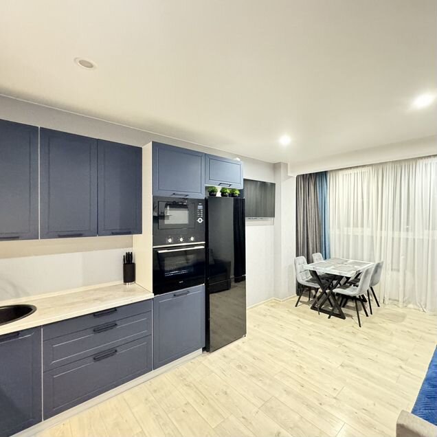 Квартира с качественным евроремонтом, что создаёт атмосферу уюта и комфорта. В комнате и на кухне есть вся необходимая мебель. К вашим услугам современная техника: кондиционер, холодильник, посудомоечная и стиральная машины. Совмещённый санузел оборудован ванной. Также в квартире есть балкон, где можно насладиться свежим воздухом.