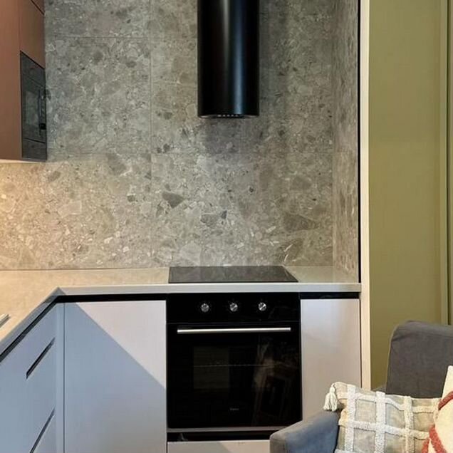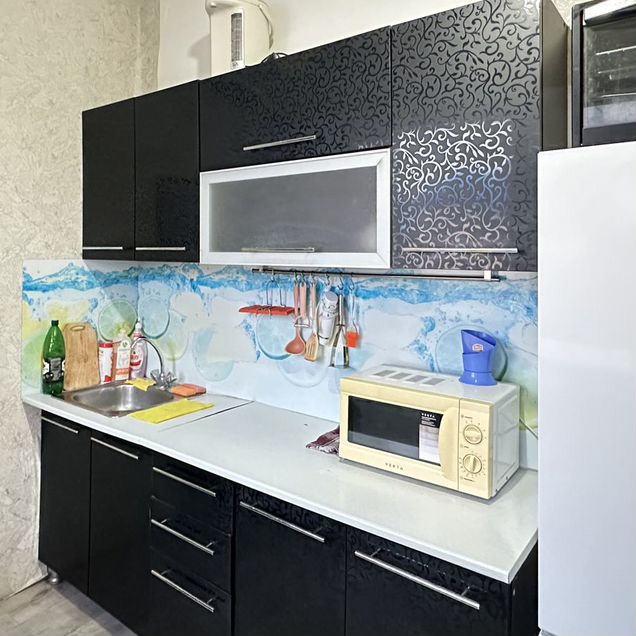 Студия с современным ремонтом. Встроенная кухня. Санузел полностью в плитке. Установлен бойлер на случай отключения горячей воды. Есть все необходимое для проживания.