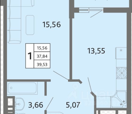 1-комн. кв., 37.6 м², 18/20 этаж