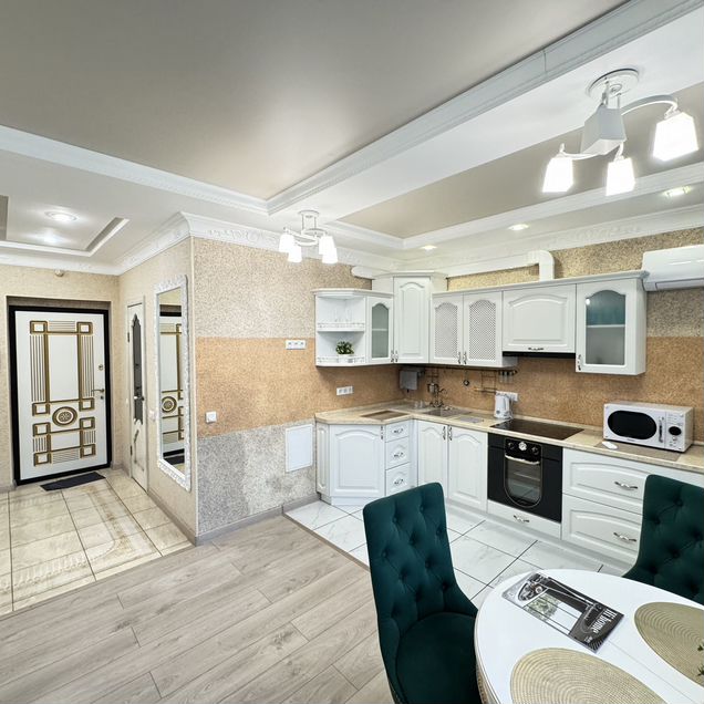 В квартире сделан евроремонт, что обеспечивает современный и стильный интерьер. В вашем распоряжении вся необходимая мебель как на кухне, так и в комнате. Кухня просторная, 9 кв. м, оборудована всем необходимым для комфортной готовки. Из техники есть кондиционер, холодильник и стиральная машина. Санузел совмещённый, с ванной.
