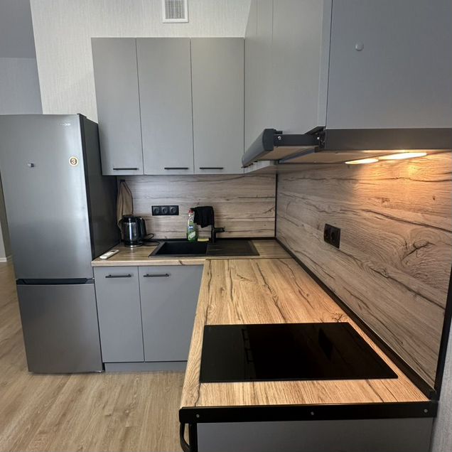 Квартира с евроремонтом, полностью готова к проживанию. В просторной кухне площадью 24 кв. м есть вся необходимая мебель и техника: холодильник, кондиционер, телевизор и стиральная машина. В комнате также имеется мебель, что позволит вам сразу переехать без дополнительных хлопот. Совмещенный санузел оборудован ванной, что особенно приятно после долгого дня.