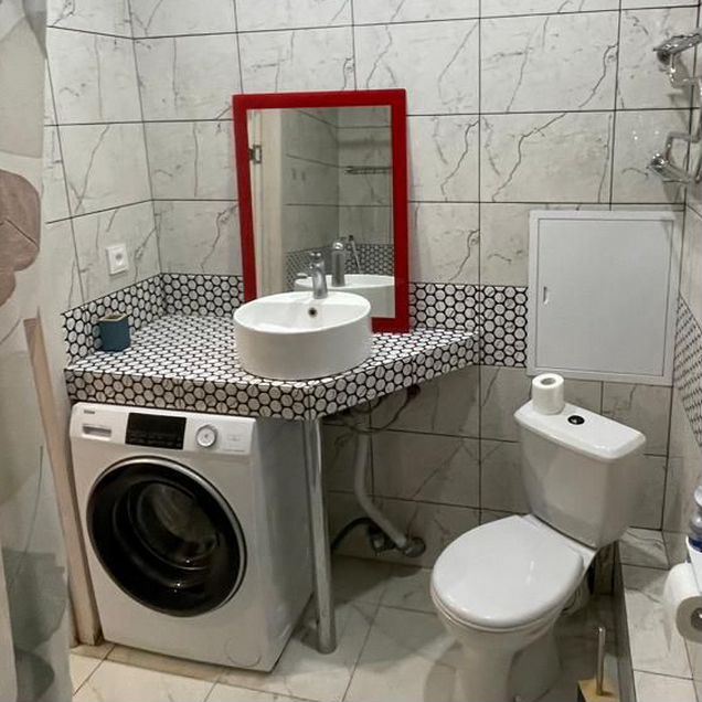 Имеется вся необходимая техника: кухня с электрической плитой на три конфорки, вытяжка, холодильник, стиральная машина. Предпочтение семейным парам, можно семьям с детьми.
