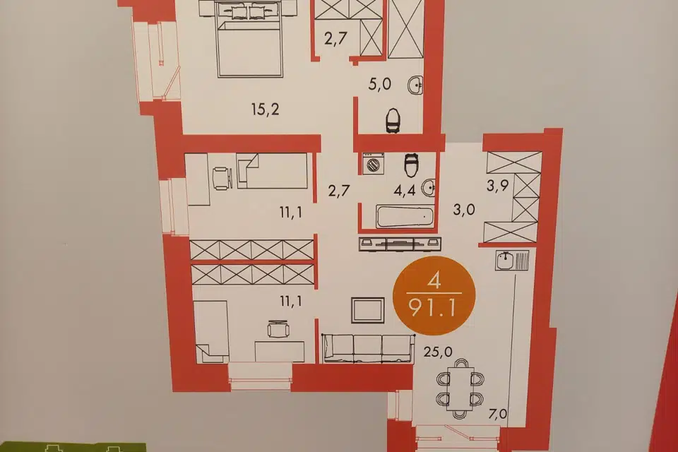 • Простор для жизни и роста. Идеальная планировка для большой семьи: 3 отдельные спальни, два санузла, большая гостиная для сборов и огромная кухня — сердце вашего дома, где поместятся все.