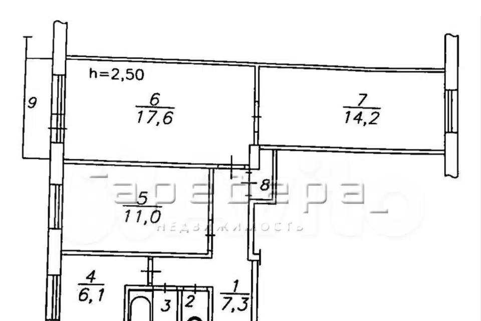 3-комн. кв., 69.1 м², 4/9 этаж