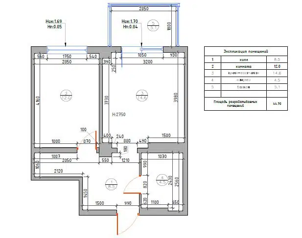 2-комн. кв., 42.1 м², 2/5 этаж