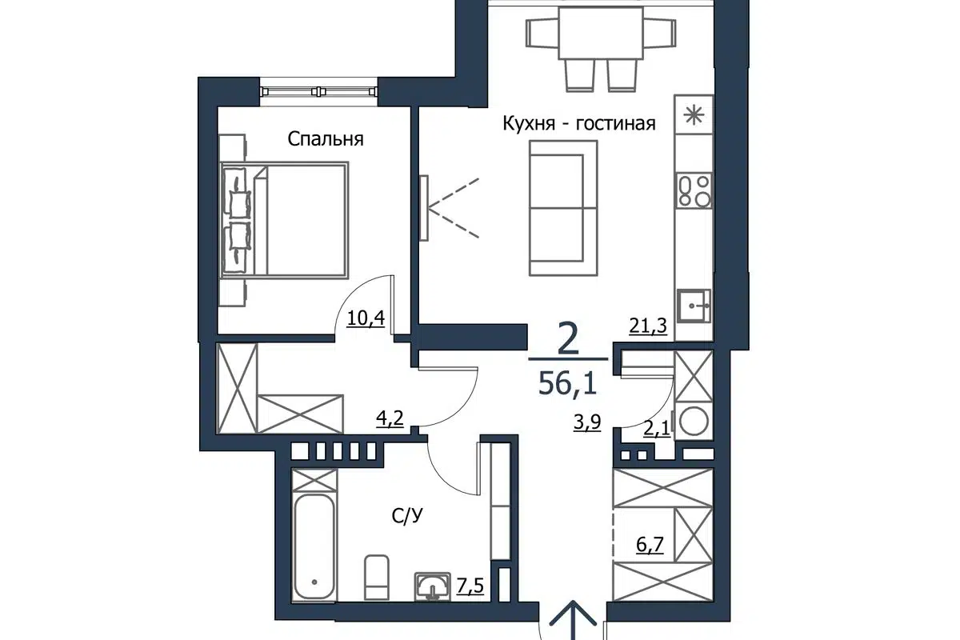 2-комн. кв., 56.5 м², 2/23 этаж