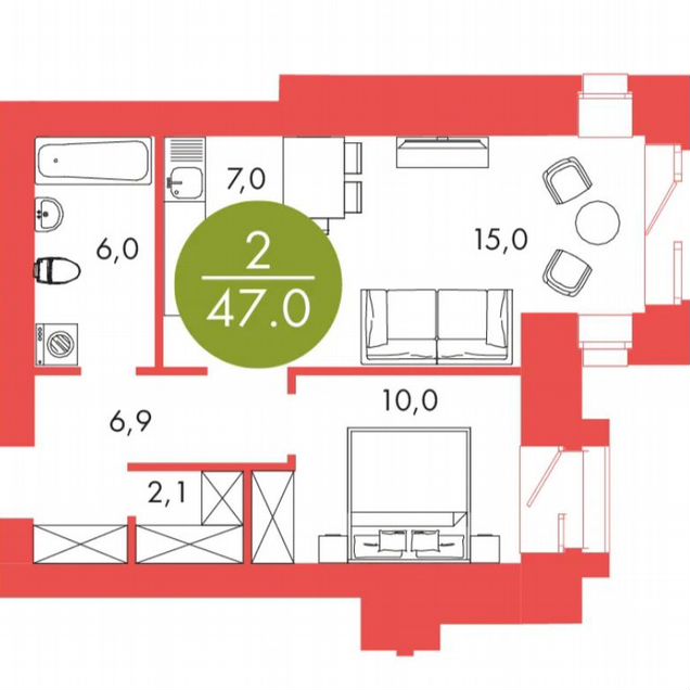 2-комн. кв., 47 м², 16/17 этаж