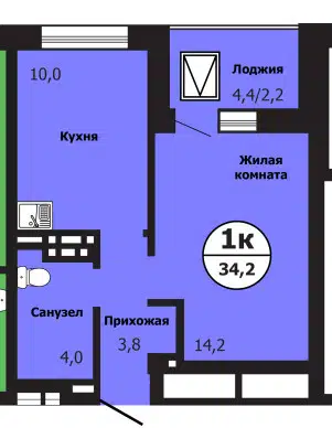 1-комн. кв., 34.2 м², 1/19 этаж