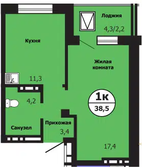 1-комн. кв., 38.5 м², 19/19 этаж
