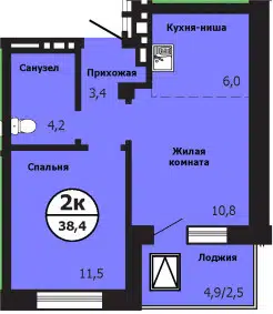 2-комн. кв., 38.4 м², 1/19 этаж