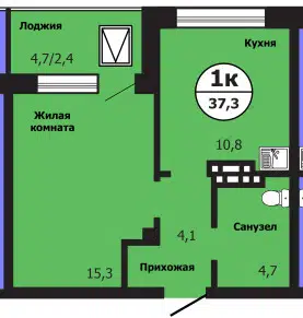1-комн. кв., 37.3 м², 18/19 этаж
