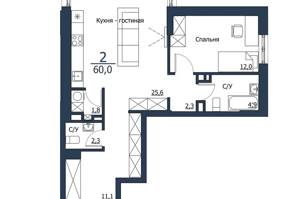 1-комн. кв., 60.2 м², 21/23 этаж