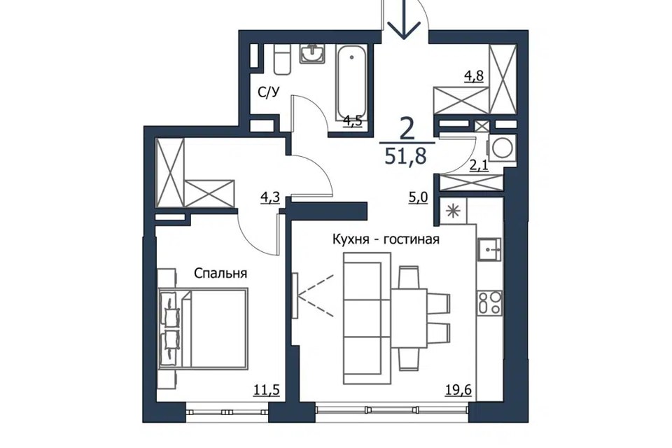 2-комн. кв., 53.6 м², 22/23 этаж