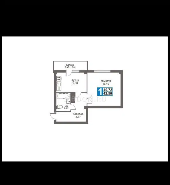 1-комн. кв., 42 м², 18/20 этаж