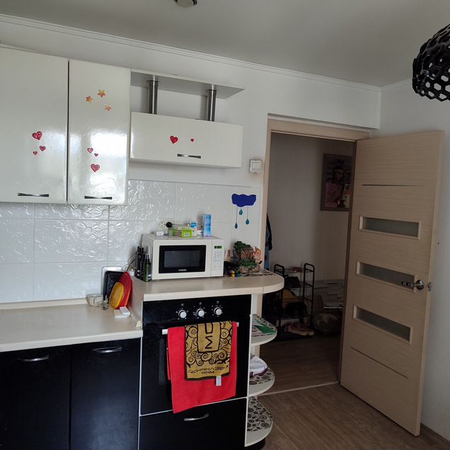 При продаже квартиры остается кухонный гарнитур со встроенной техникой, встроенные шкафы-купе и частично мебель по договоренности.
