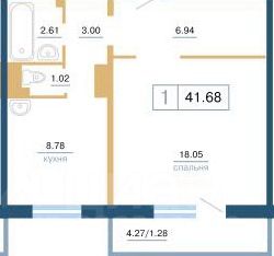 1-комн. кв., 41 м², 2/17 этаж