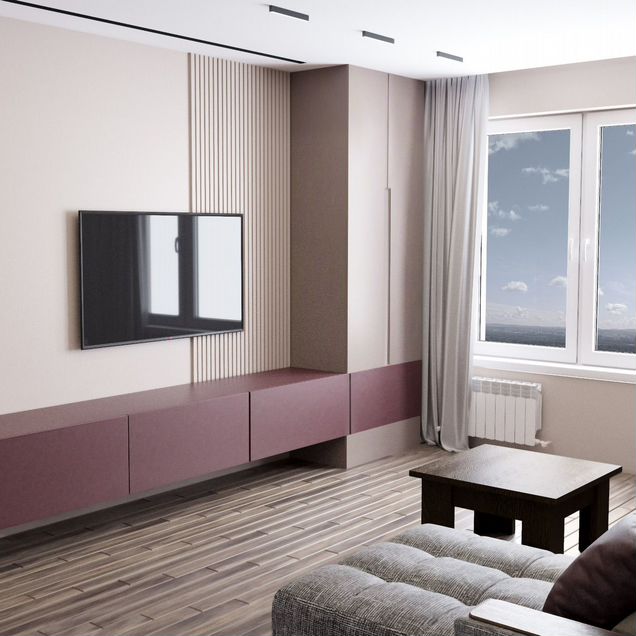 Вместо фото стоит визуализация от дизайнера. Ремонт сделан с небольшими отклонениями от плана, но в целом соответствует сути.
