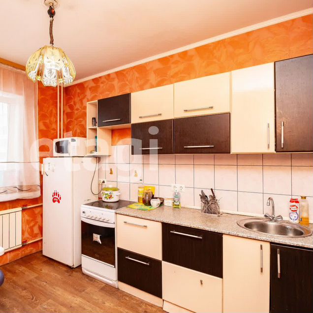 Имеется все необходимое для комфортного проживания: кух. гарнитур, газовая плита с духовым шкафом, холодильник, микроволновая печь, обеденная группа, шкаф, диван, двуспальная кровать, стиральная машина. Одна комната пустая.